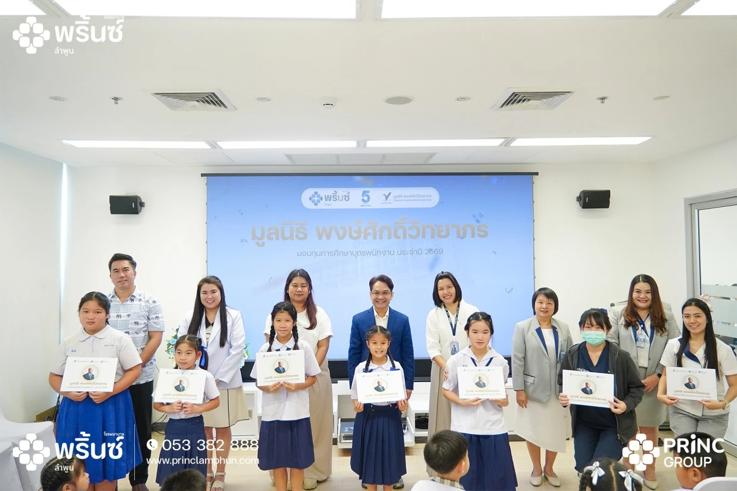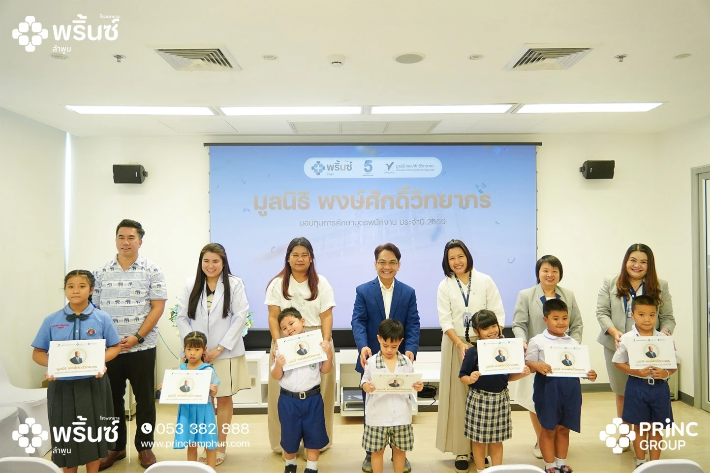 นอกจากนี้ โรงพยาบาลพริ้นซ์ ลำพูน ยังได้มีการ มอบทุนการศึกษาให้แก่บุตรของพนักงานโรงพยาบาล จาก มูลนิธิพงษ์ศักดิ์วิทยากร เพื่อส่งเสริมการศึกษาของเยาวชน และสร้างขวัญกำลังใจให้แก่ครอบครัวของบุคลากร อันเป็นการสะท้อนถึงความห่วงใยและการให้ความสำคัญต่อบุคลากร ซึ่งเป็นกำลังสำคัญในการขับเคลื่อนองค์กร