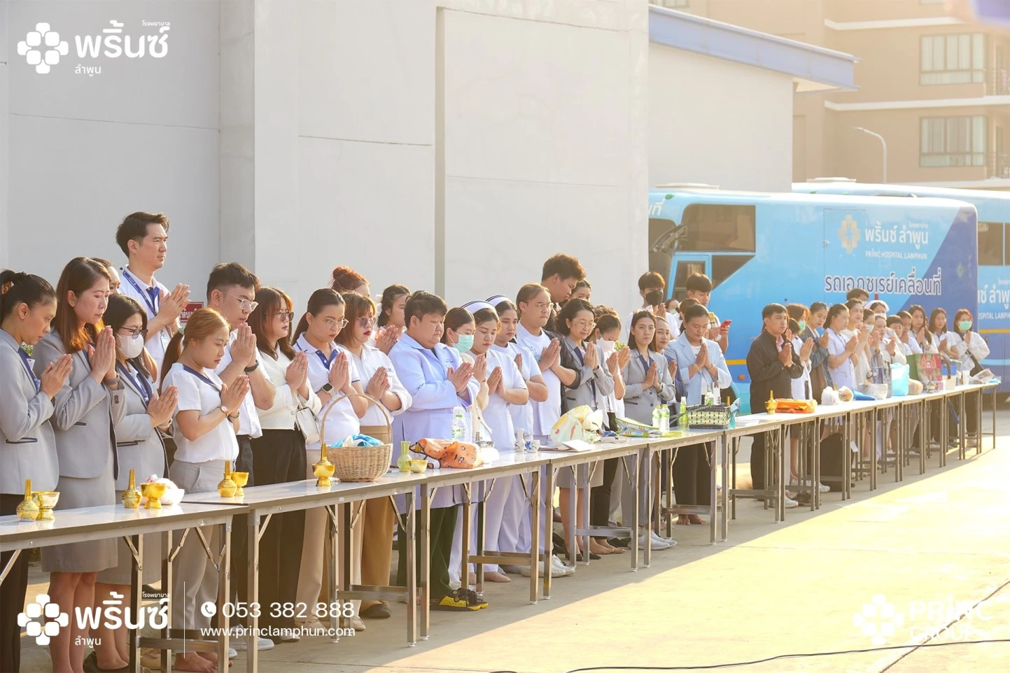 โรงพยาบาลพริ้นซ์ ลำพูน จัดพิธีทำบุญ ตักบาตร และไหว้ศาลพระพรหม เพื่อความเป็นสิริมงคล เนื่องในโอกาสครบรอบ 5 ปี โรงพยาบาลพริ้นซ์ ลำพูน โดยมี นพ.อธิวัฒน์ น้อยประสิทธิ์ ผู้อำนวยการโรงพยาบาลพริ้นซ์ ลำพูน นำทีมคณะผู้บริหาร แพทย์ และบุคลากร ร่วมประกอบพิธีด้วยความพร้อมเพรียง เพื่อเสริมสร้างขวัญและกำลังใจในการปฏิบัติงาน และมุ่งมั่นพัฒนาการให้บริการด้านสุขภาพอย่างต่อเนื่อง
