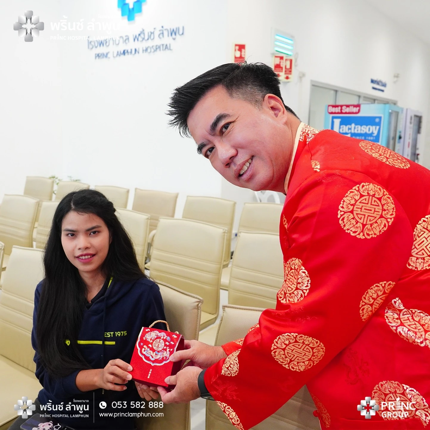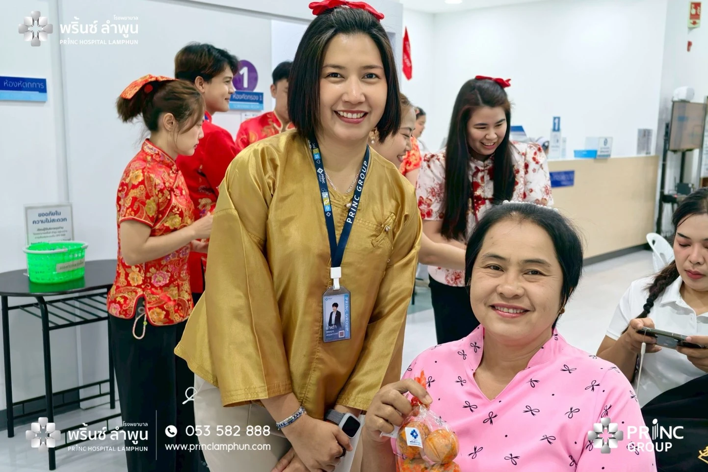 โรงพยาบาลพริ้นซ์ ลำพูน จัดกิจกรรมมอบส้มมงคลให้แก่ผู้รับบริการ เนื่องในโอกาสเทศกาลตรุษจีน เพื่อร่วมส่งต่อความปรารถนาดี ความเป็นสิริมงคล และสร้างบรรยากาศแห่งความสุขให้แก่ผู้ที่เข้ามาใช้บริการภายในโรงพยาบาล